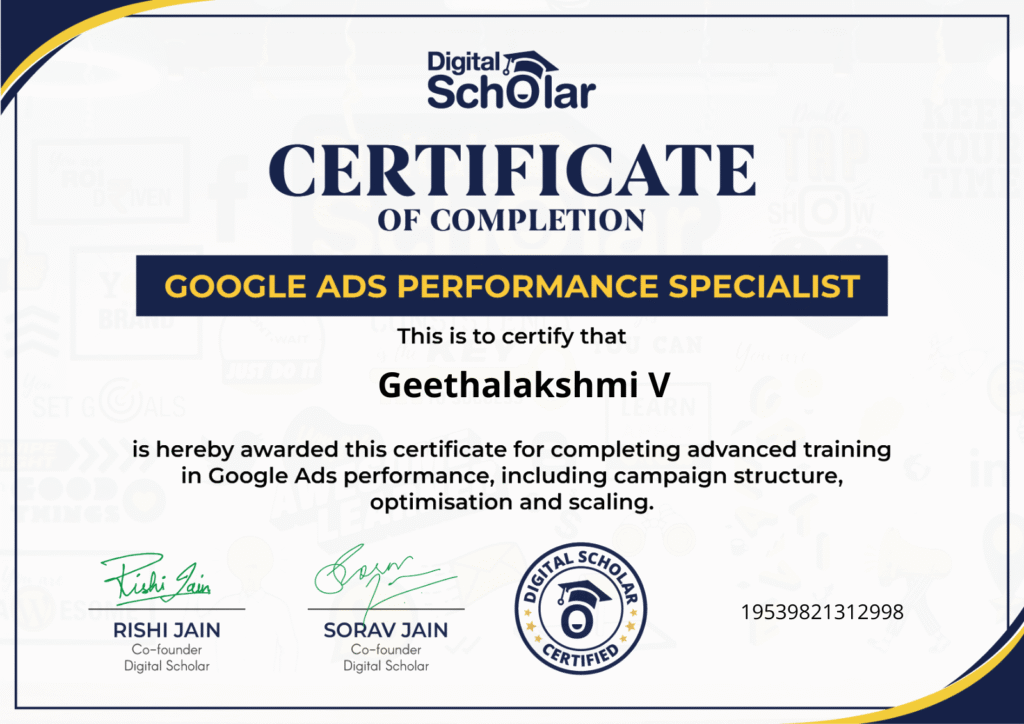 My journey toward becoming a Google Ads and Performance Marketing Specialist did not happen overnight. It was built step by step through structured learning, certification, and real campaign execution.